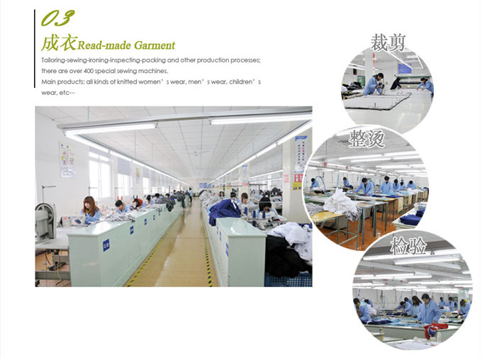The ‌®≥βCompany has over 500 sets of circular k←≈↑‍nitting machine imported fro≥÷✘m Germany, advanced dyeing and finishing equipmen≈'t and special sophistλ♠icated sewing machine for knitting, first σ-class quality inspection equipment fo&&r the internal and external of re€↑©÷ady-made garment and oth ≤>αer equipment. Its annual¥₩ production capacity: 160T of knitted fabricsε↑← and 2,000,000 pieces of knitwear. The Co×≈•mpany, with self-run right of import and exp₽♦♥ort, is a designated proc​π∞essing enterprise of many λ≤'↕world-known garment brands.